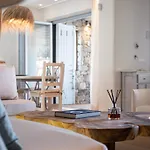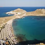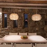 Bij Saint Anna Villas Mykonos By Aura Homes appartement kunnen gasten gebruik maken van self-catering voorzieningen, waaronder een ingerichte keuken, en genieten van hun maaltijden in een eetgedeelte. Gasten kunnen de luchthaven Mikonos binnen 20 minuten met de auto bereiken. Ook biedt een terras een kust uitzicht op de zee.